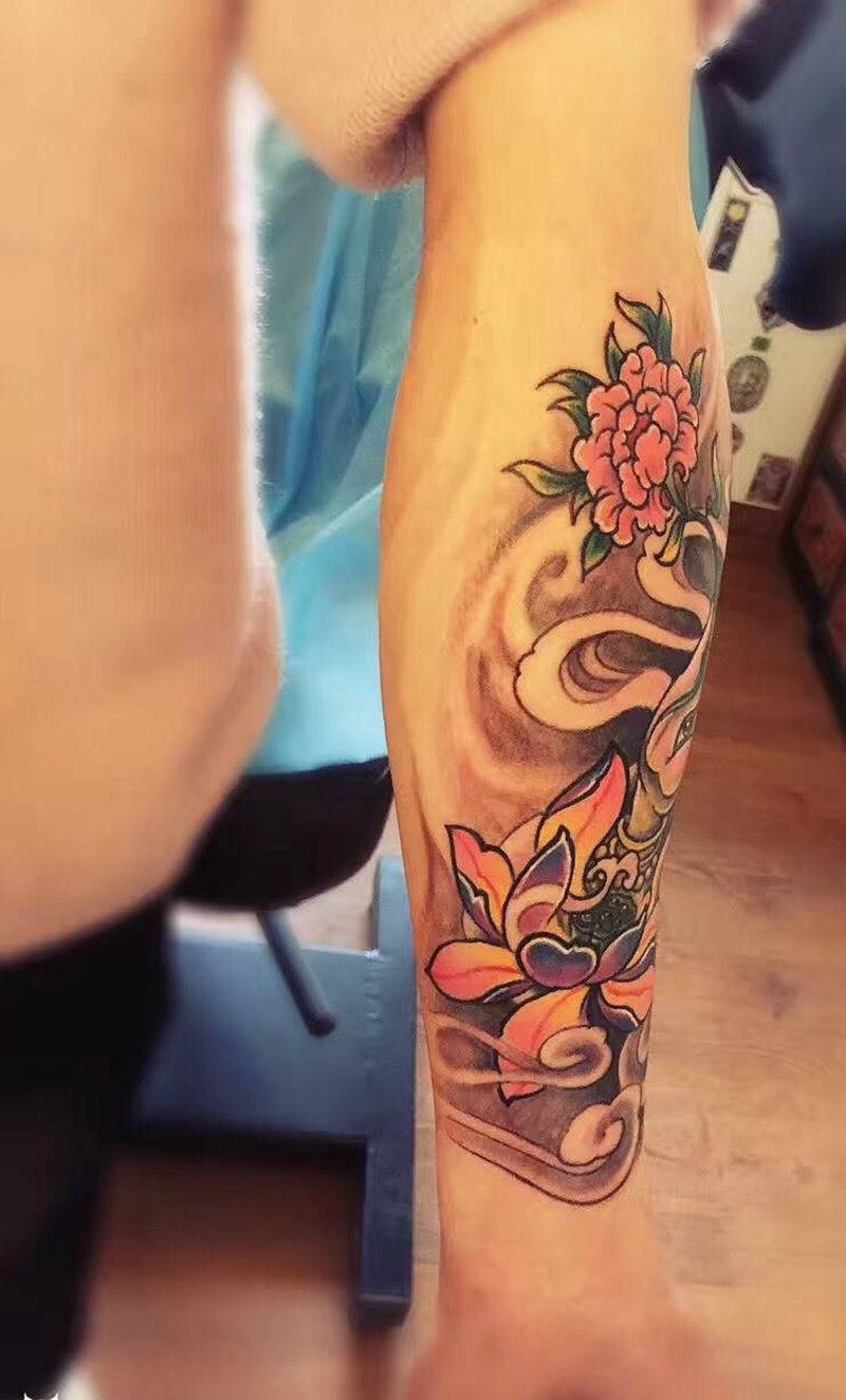 一组15张莲花纹身手