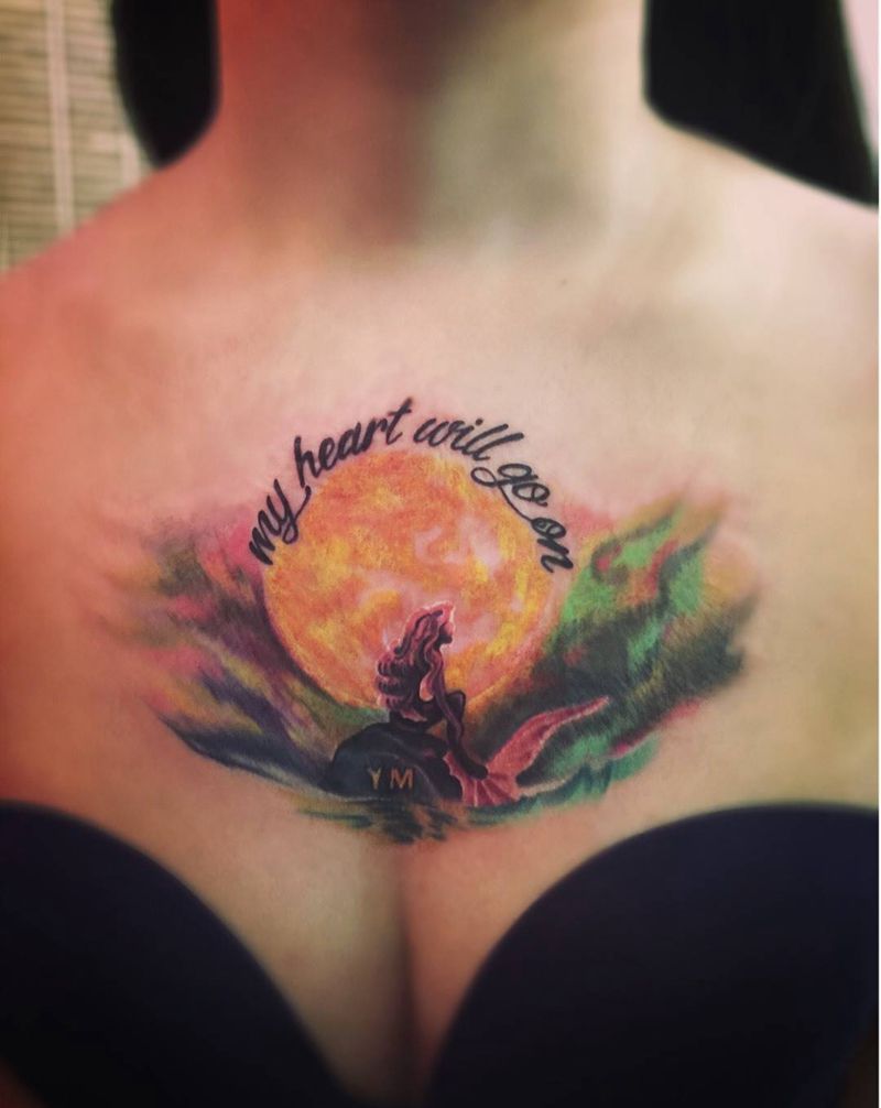 美人鱼纹身图片_插画胸部欧美人物纹身图案