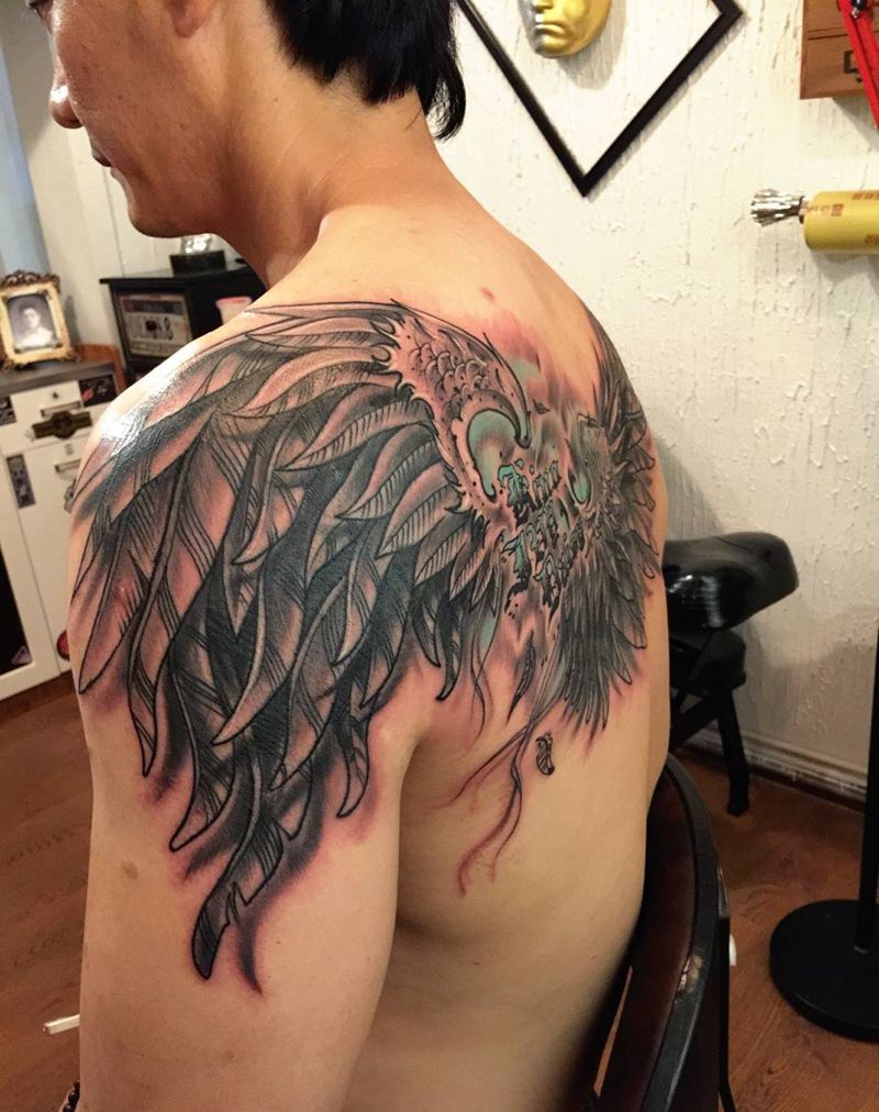 守护家庭的翅膀纹身图片