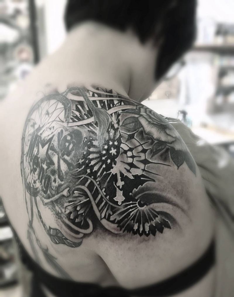 • 纹身吧推荐的披肩图腾半胛纹身图案作品展示