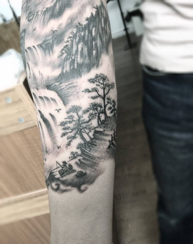 水墨山水画纹身图片