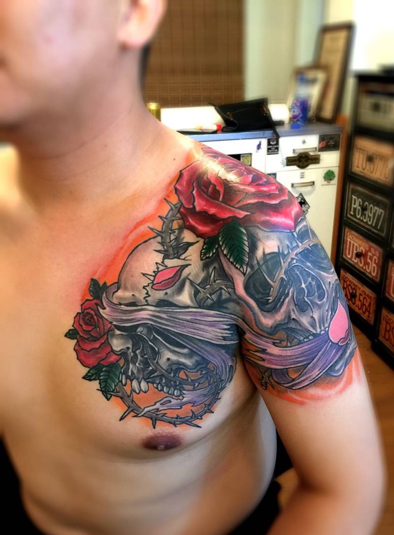 • 女性大花胸纹身_43张霸气漂亮的女性大花胸纹身图案作品
