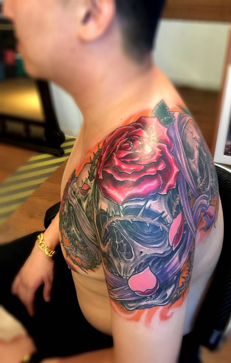 • 纹身吧推荐的披肩图腾半胛纹身图案作品展示