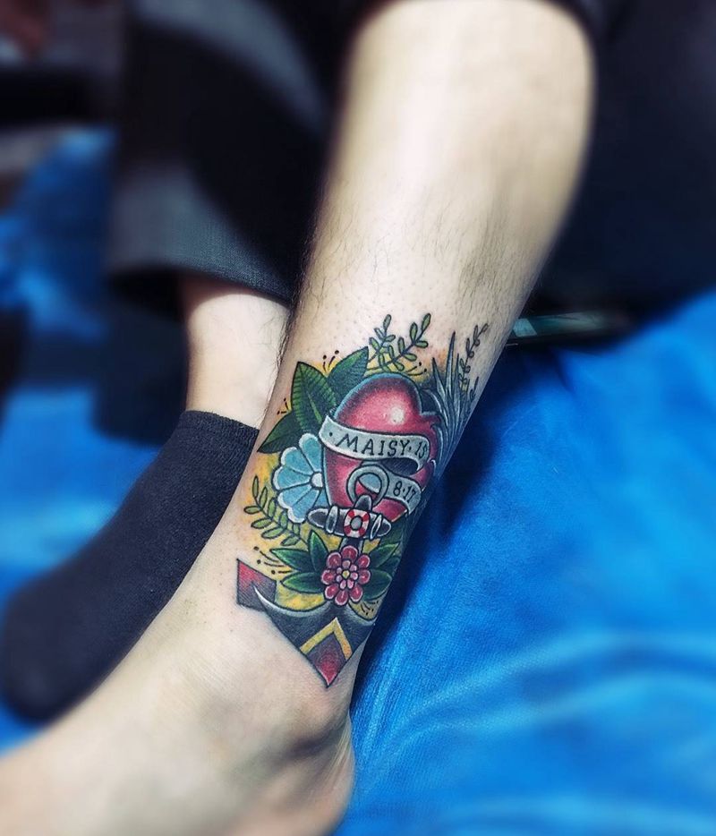 • T包小腿吹火男+阿多福纹身图片_腿部老传统新传统吹火男阿