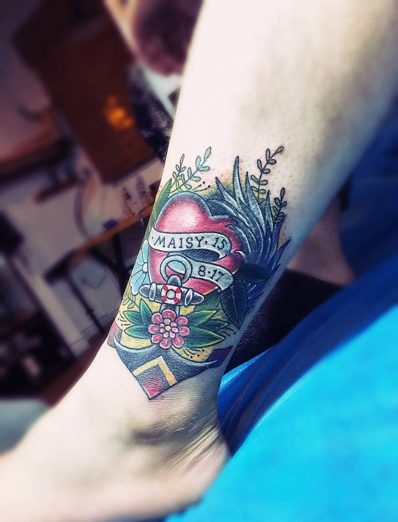 • T包小腿吹火男+阿多福纹身图片_腿部老传统新传统吹火男阿