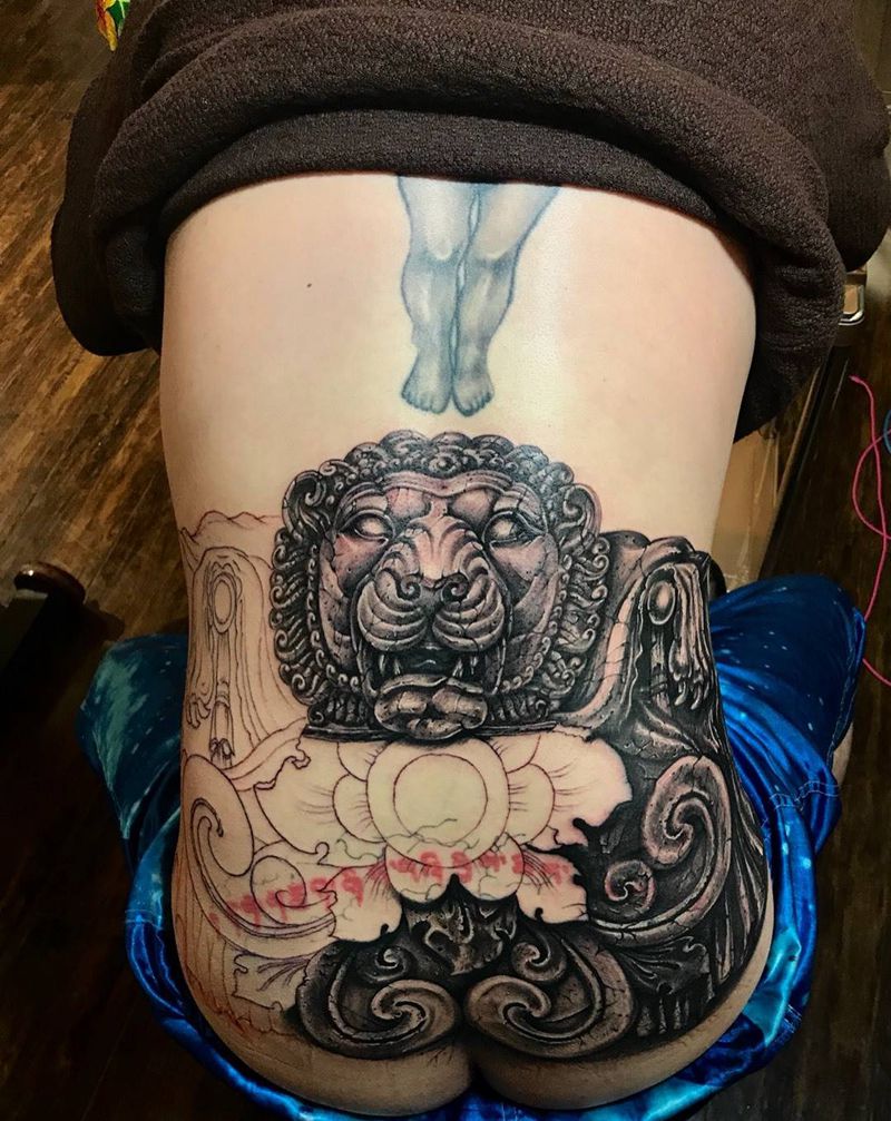 • T网红王老大花腿龙纹身图片_腿部新传统纹身图案