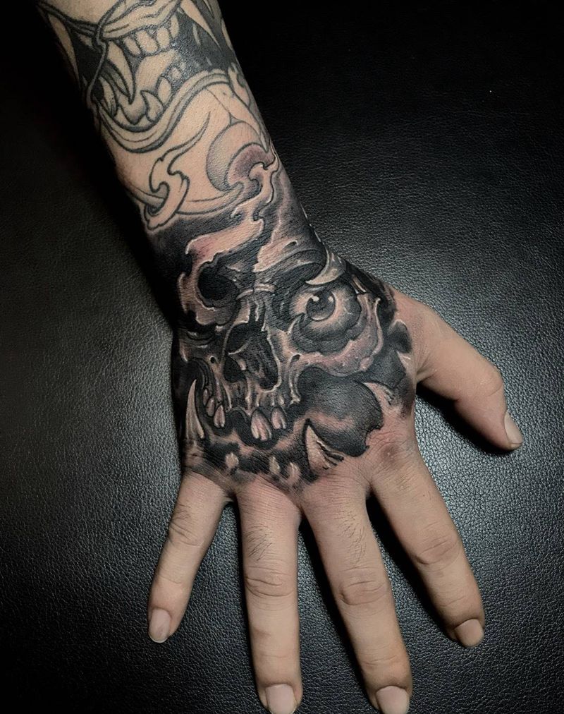 当前位置: 首页 >河北省邯郸市纹身店-邯郸牛刺青纹身图案>骷髅手背纹身图片