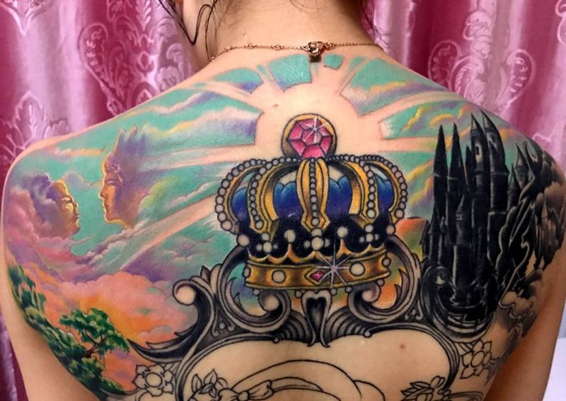 黑灰满背纹身图案