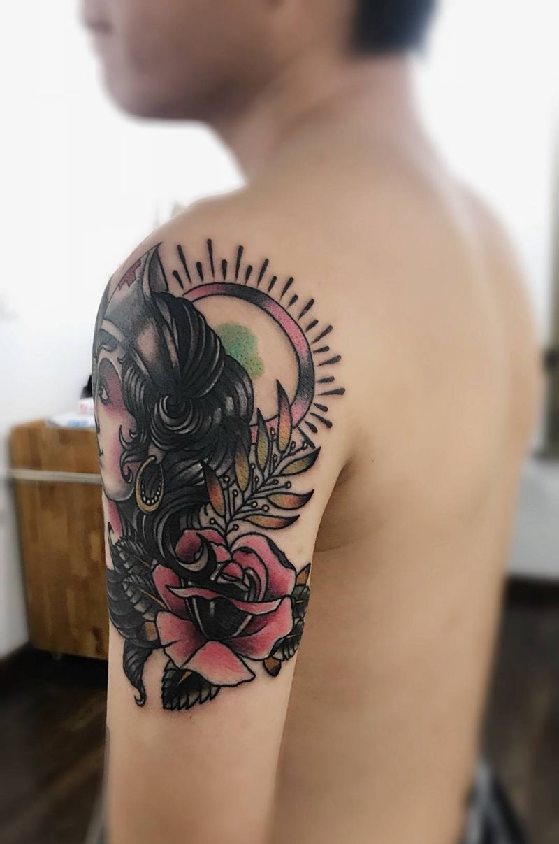 • 纹身吧推荐的披肩图腾半胛纹身图案作品展示
