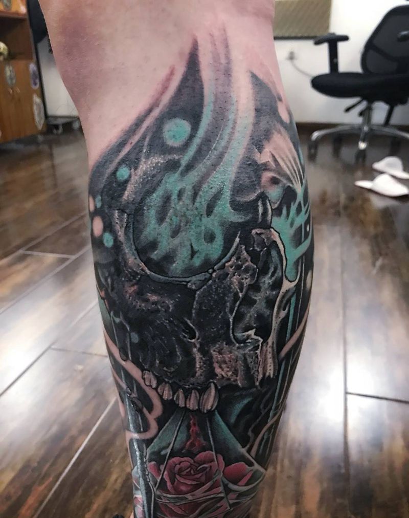 • T网红王老大花腿龙纹身图片_腿部新传统纹身图案