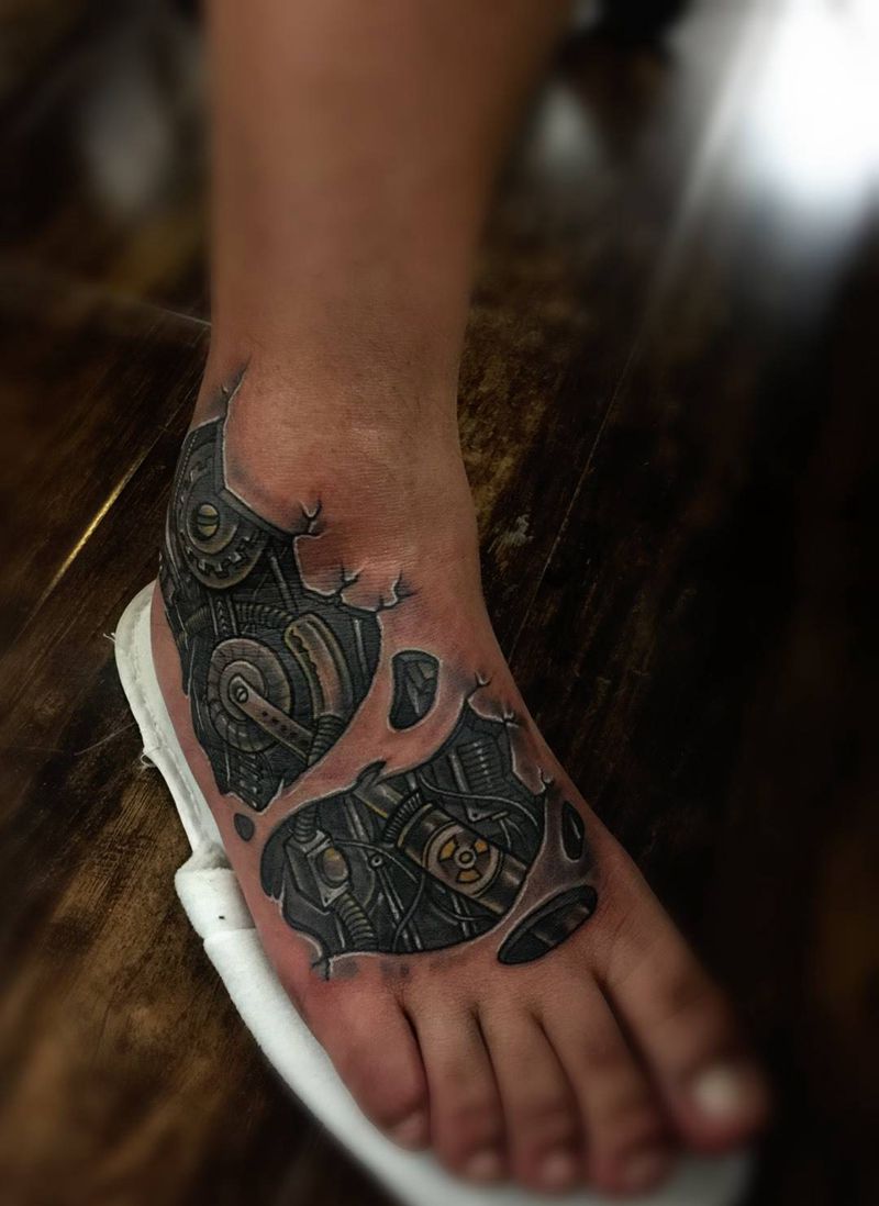 机械脚纹身图片