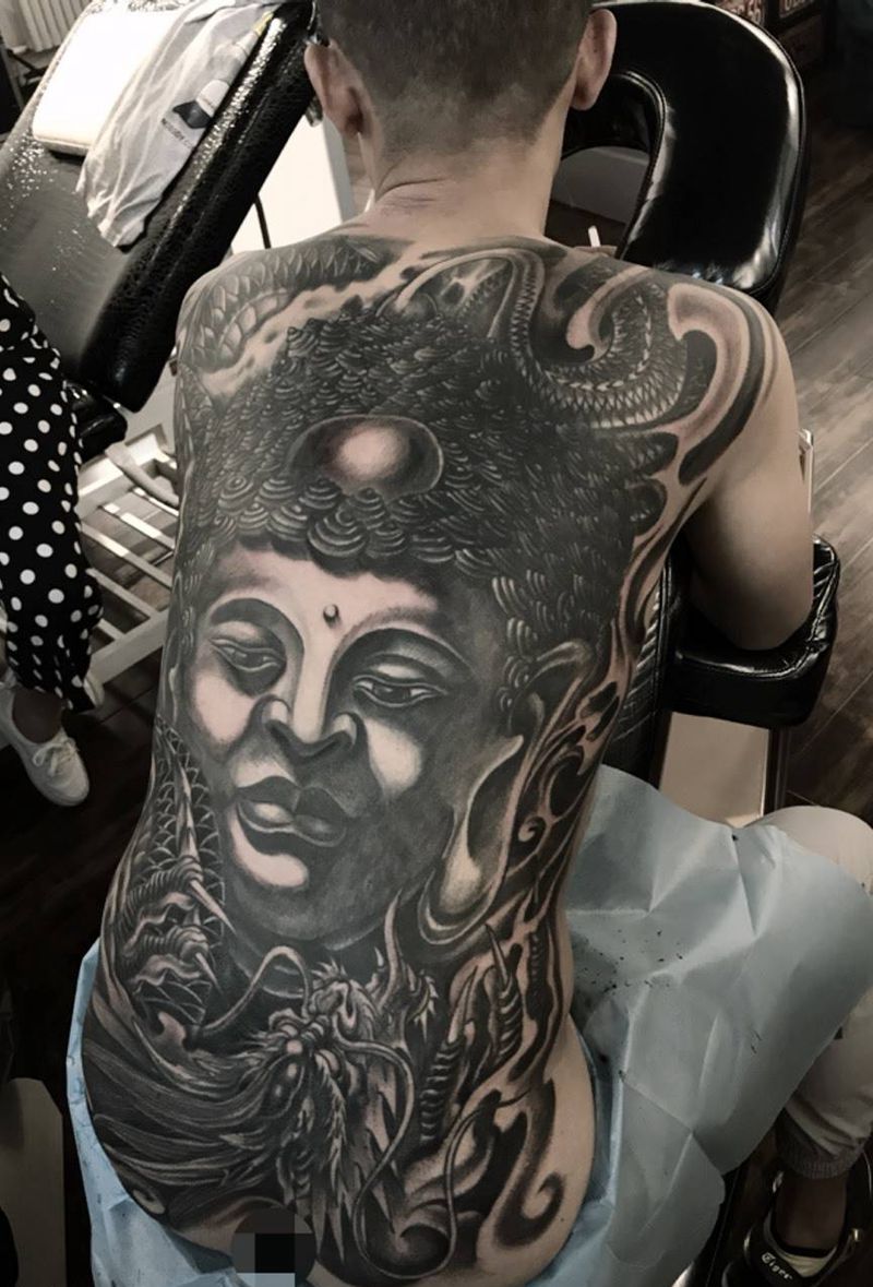 黑灰满背纹身图案
