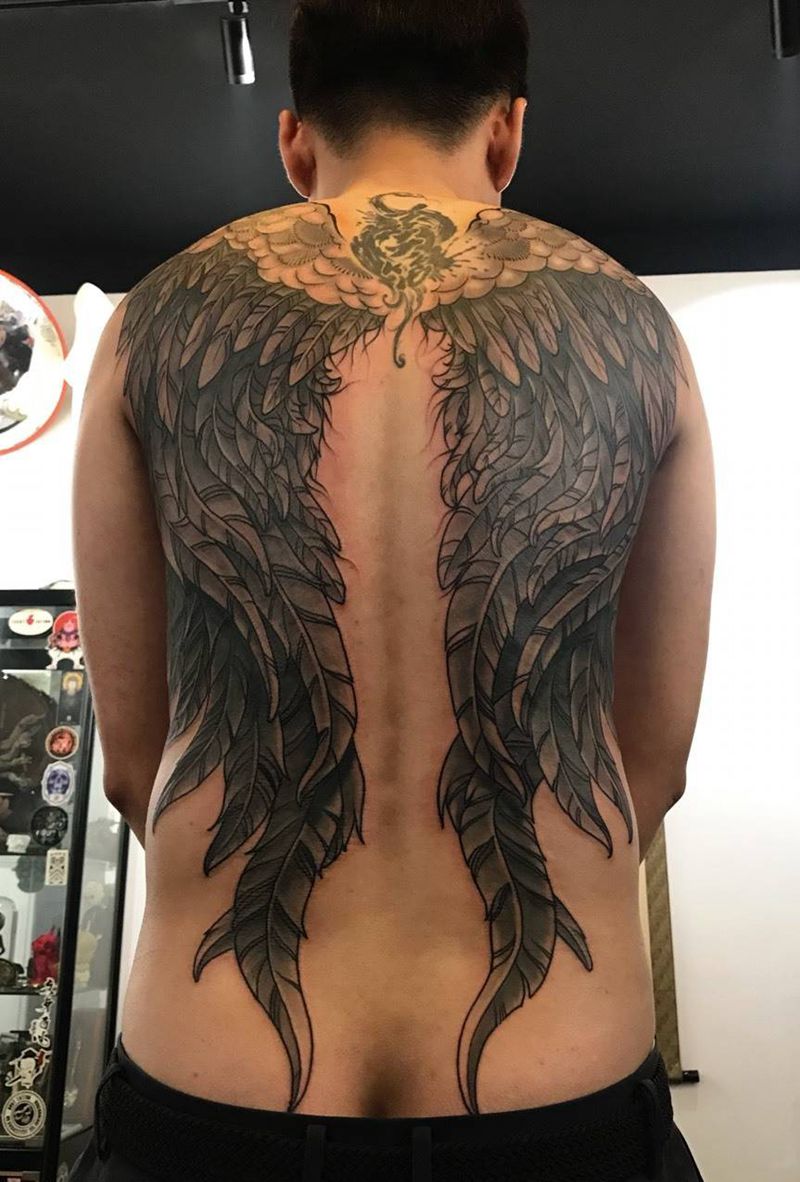 黑灰满背纹身图案