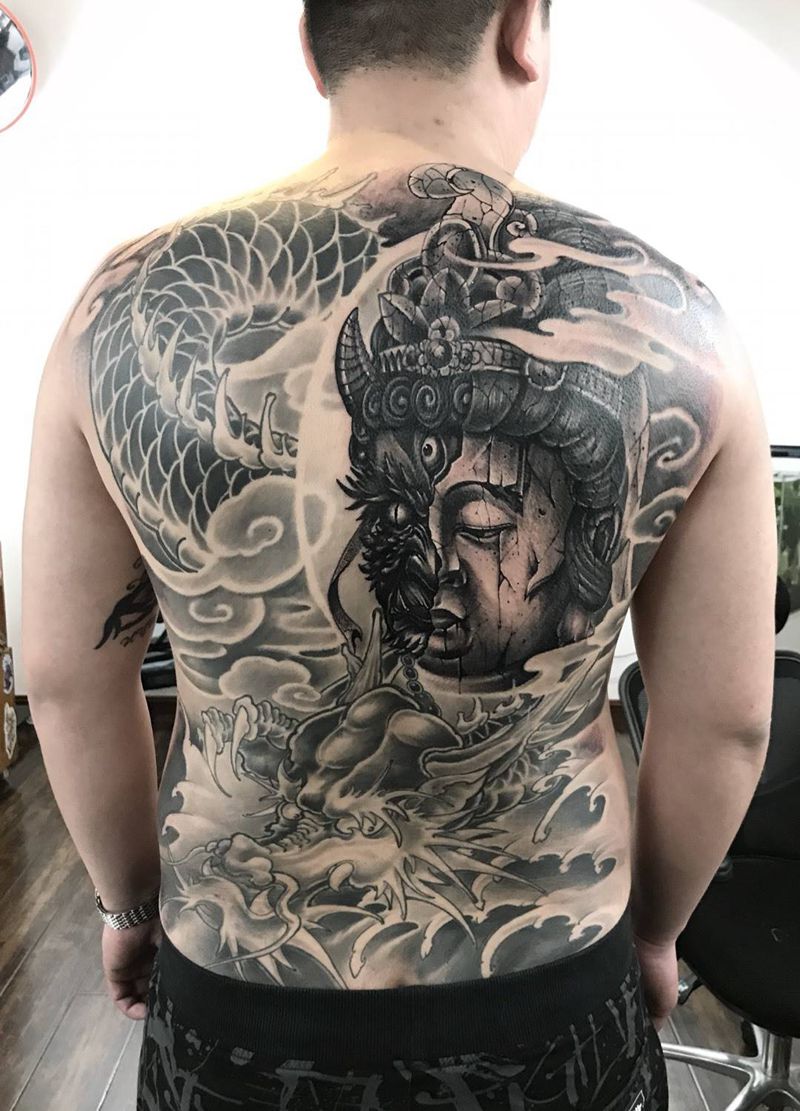 黑灰满背纹身图案