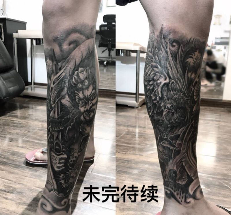 • T网红王老大花腿龙纹身图片_腿部新传统纹身图案