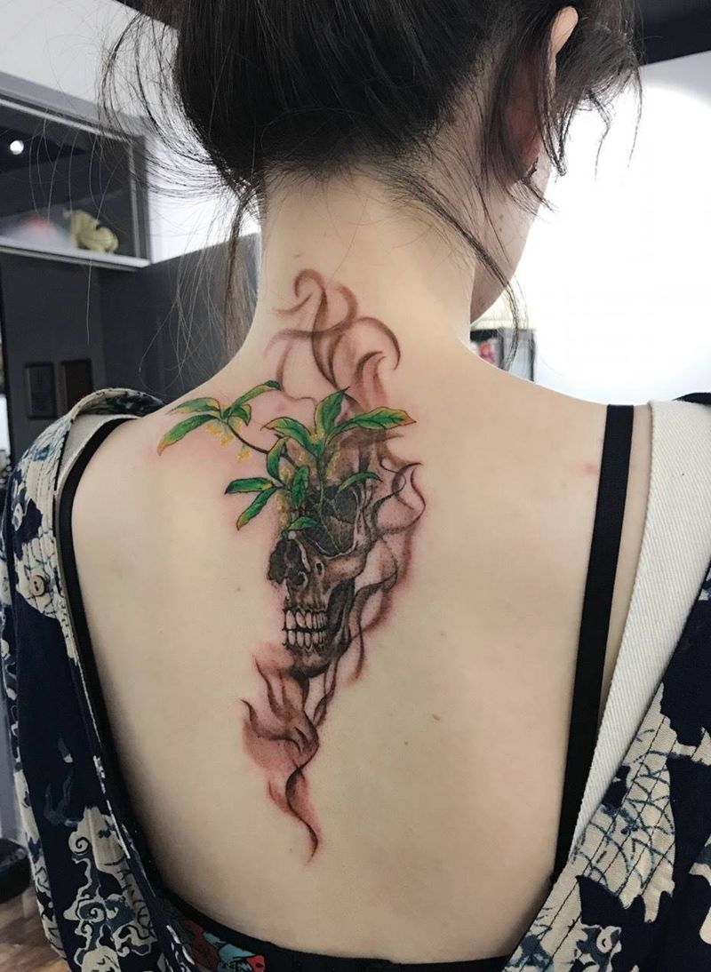 黑灰满背纹身图案
