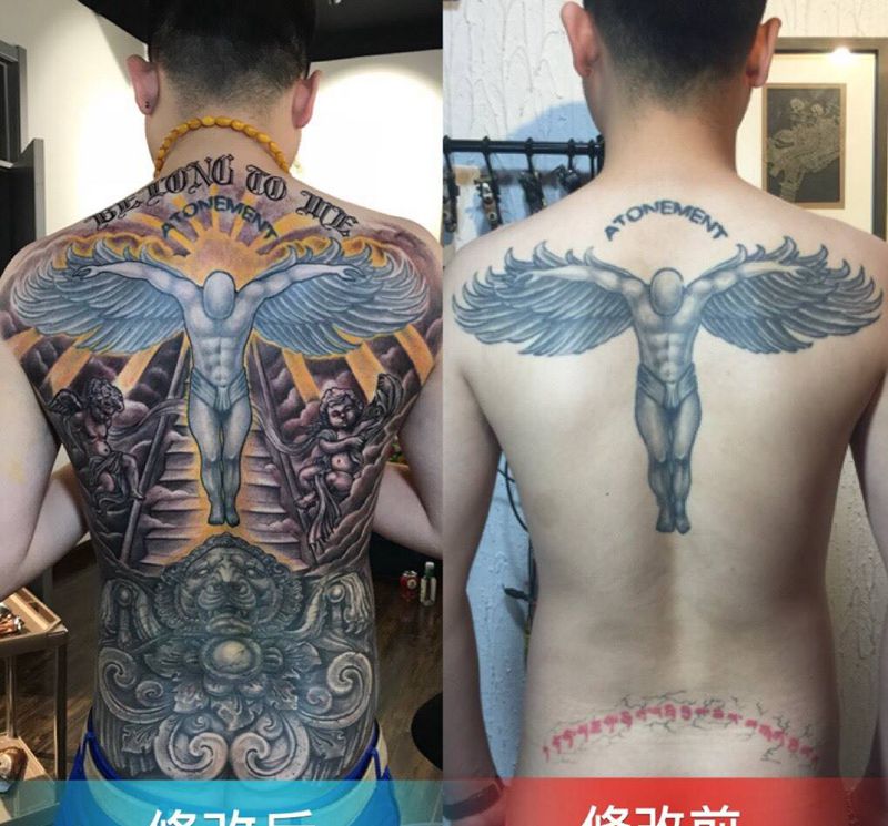 • 黑灰满背纹身图案