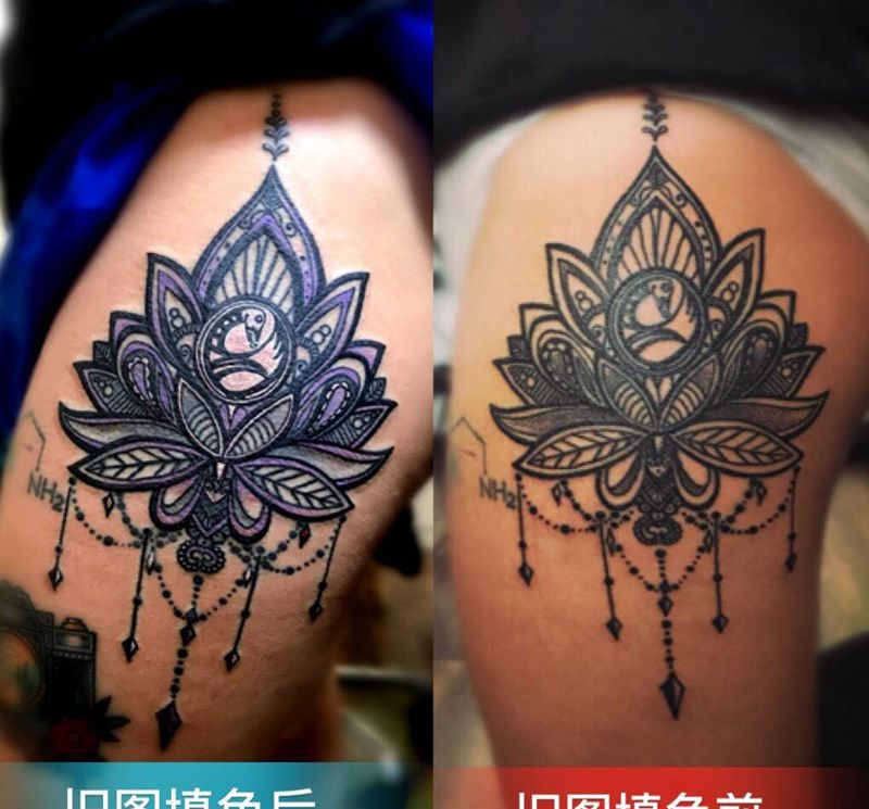 一组15张莲花纹身手