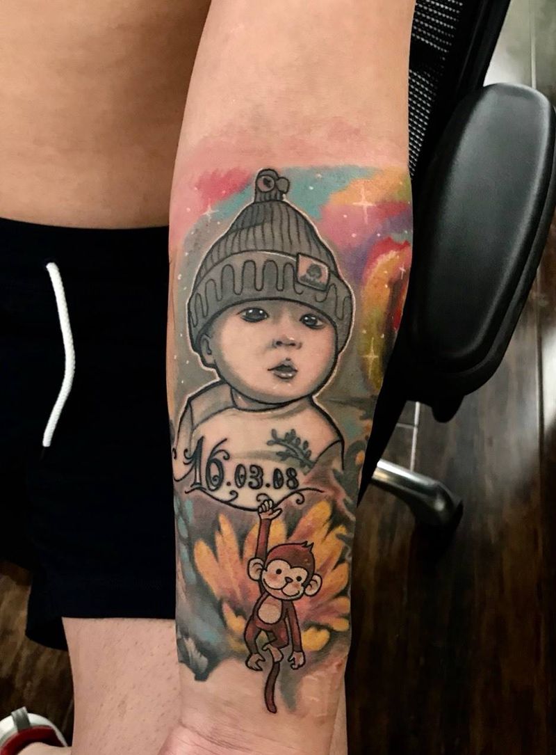 • T家庭图,一家四口生日纪念!纹身图片_手臂纹身图案