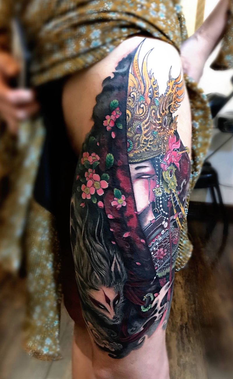 • T网红王老大花腿龙纹身图片_腿部新传统纹身图案