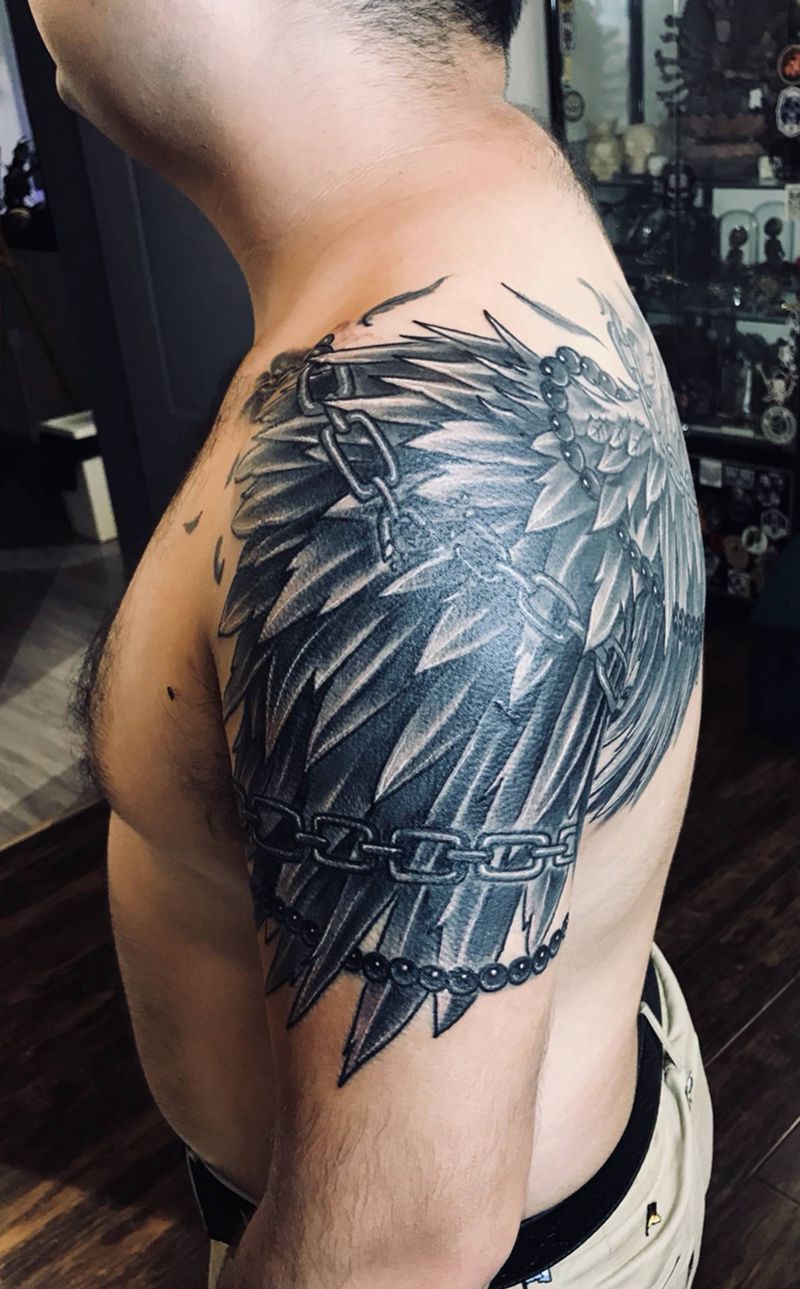 • 纹身吧推荐的披肩图腾半胛纹身图案作品展示