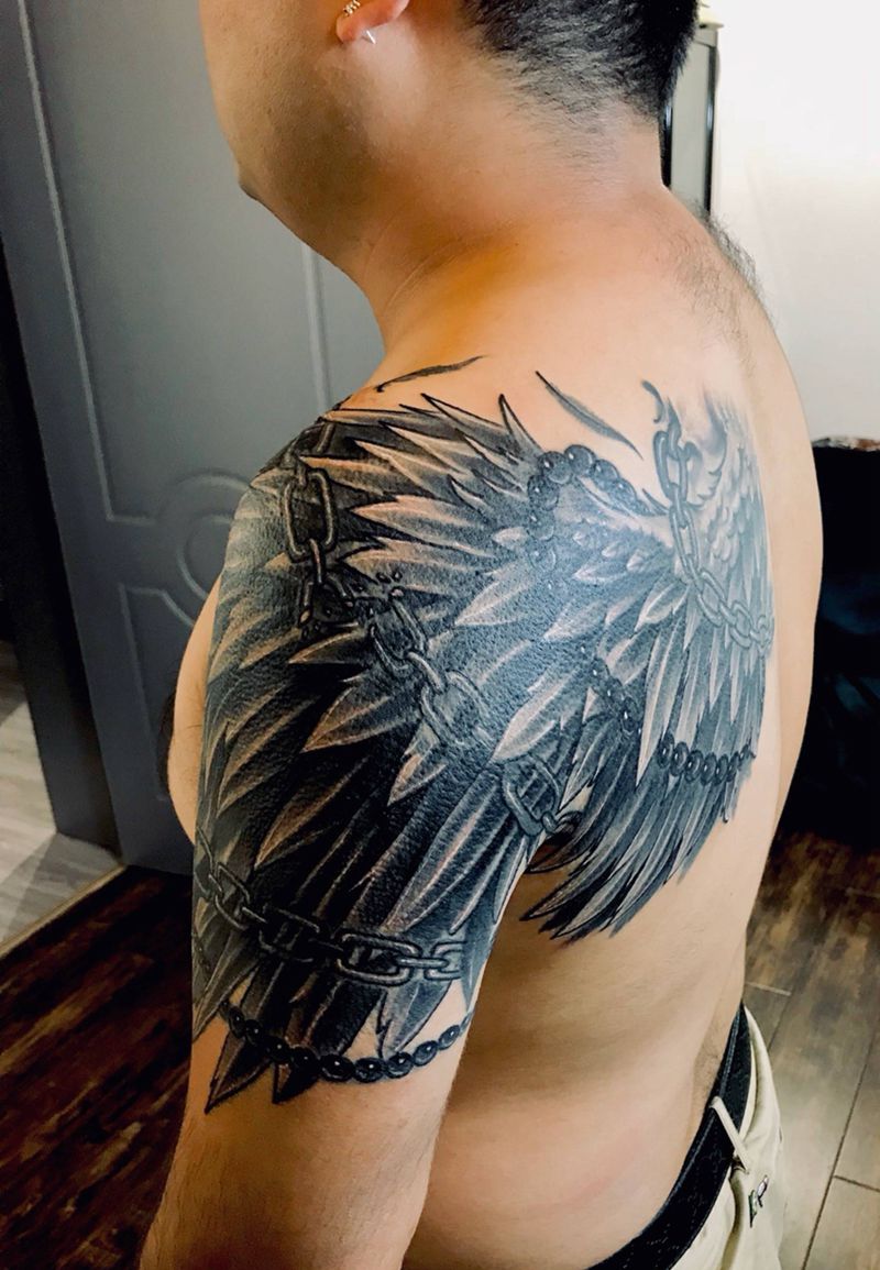 • 纹身吧推荐的披肩图腾半胛纹身图案作品展示