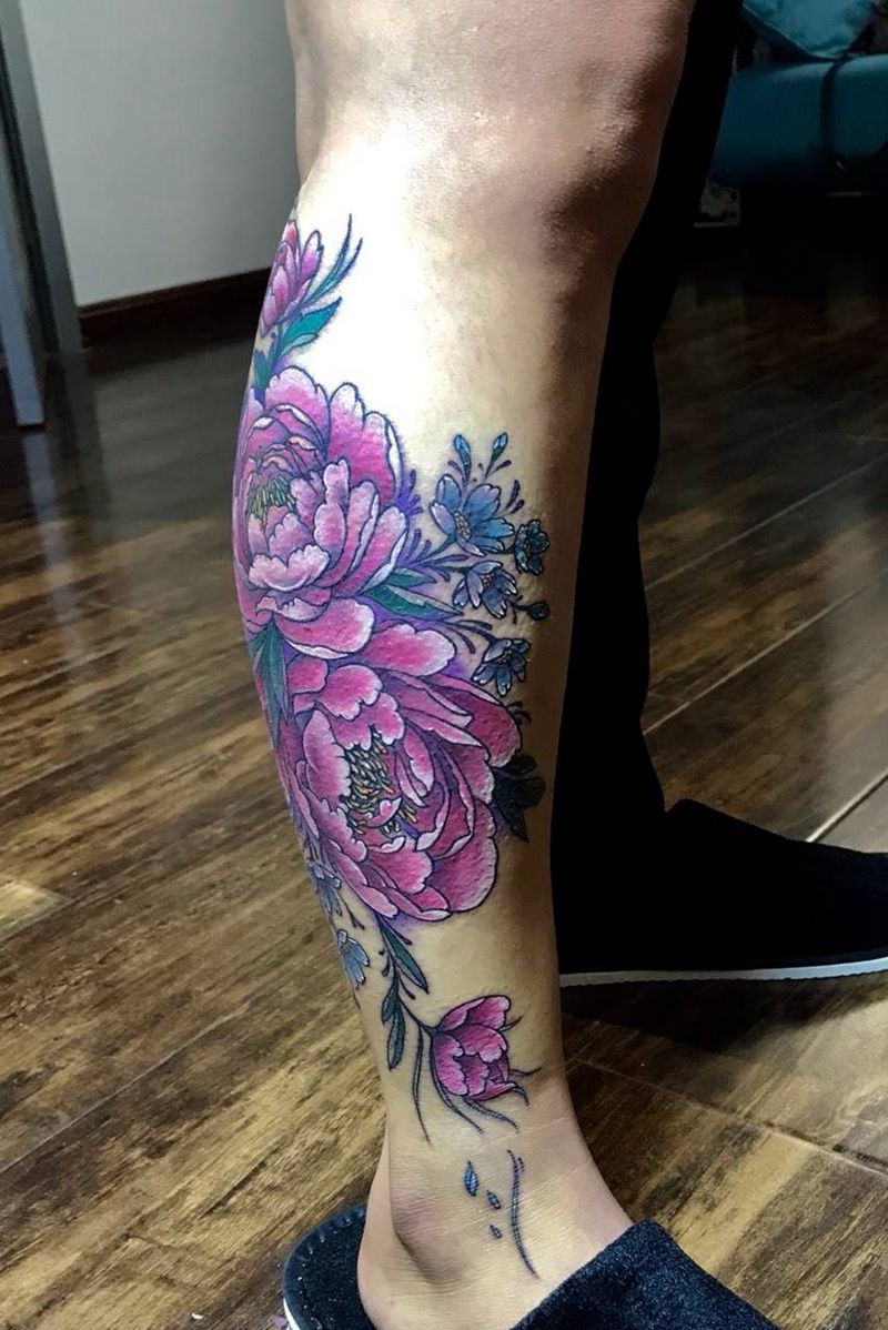 • T网红王老大花腿龙纹身图片_腿部新传统纹身图案