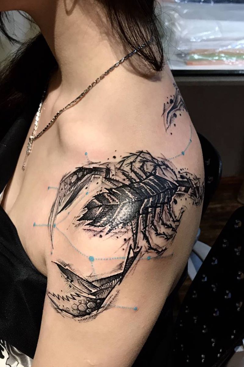 当前位置: 首页 >河北省邯郸市纹身店-邯郸牛刺青纹身图案>蝎子纹身图片_肩部点刺几何纹身图案