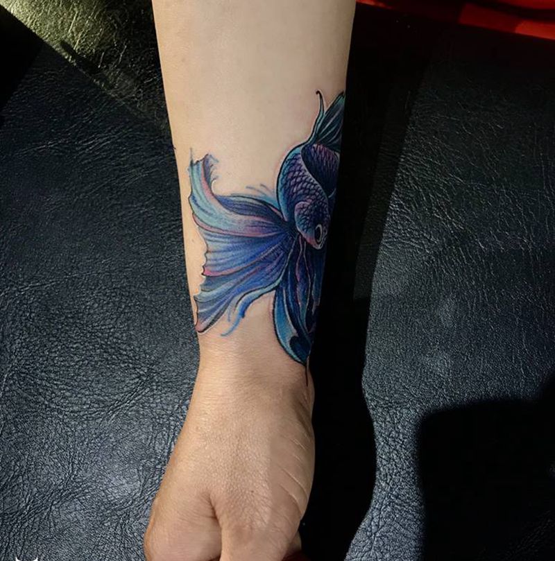 当前位置: 首页 >河北省邯郸市纹身店-邯郸牛刺青纹身图案>斗鱼纹身图片_手臂手部欧美写实水彩纹身图案