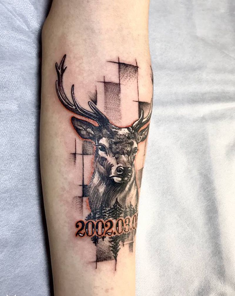 当前位置: 首页 >河北省邯郸市纹身店-邯郸牛刺青纹身图案>鹿纹身图片_手臂欧美写实纹身图案