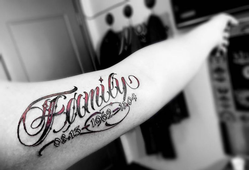 当前位置: 首页 >河北省邯郸市纹身店-邯郸牛刺青纹身图案>Family纹身图片_手臂花体字纹身图案