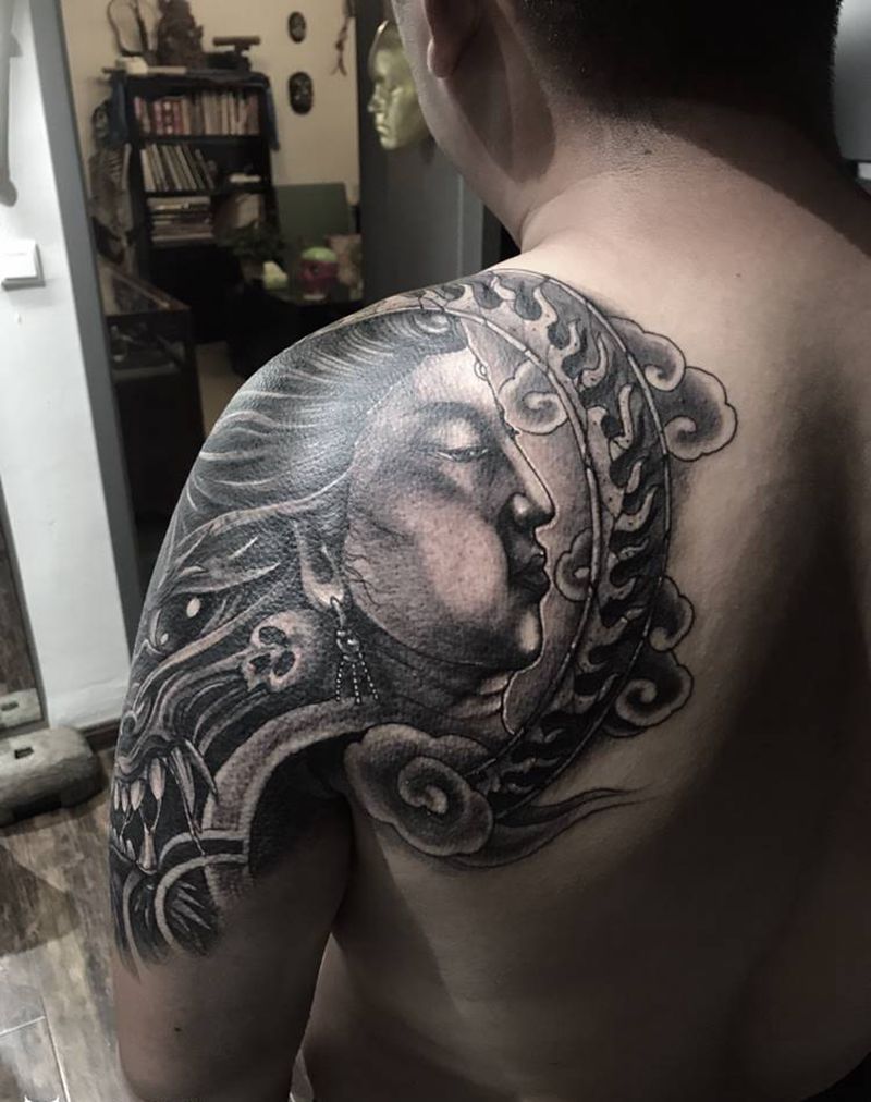 魔与佛纹身图片_肩部背部新传统纹身图案