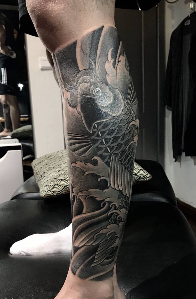 鲤鱼纹身图片_腿部老传统新传统纹身图案