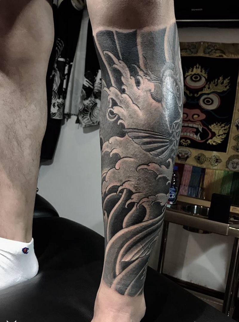 鲤鱼纹身图片_腿部老传统新传统纹身图案