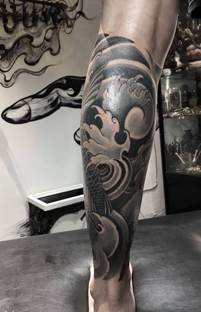 鲤鱼纹身图片_腿部老传统新传统纹身图案
