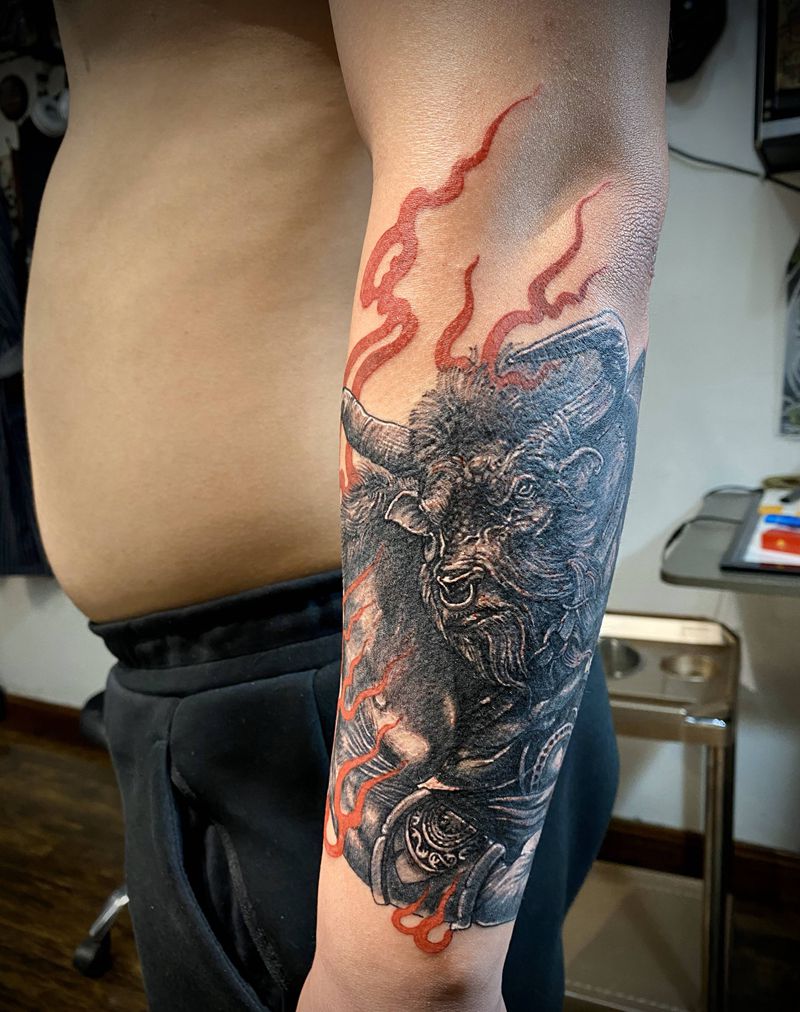 当前位置: 首页 >河北省邯郸市纹身店-邯郸牛刺青纹身图案>牛魔王纹身图片_手臂新传统欧美写实纹身图案
