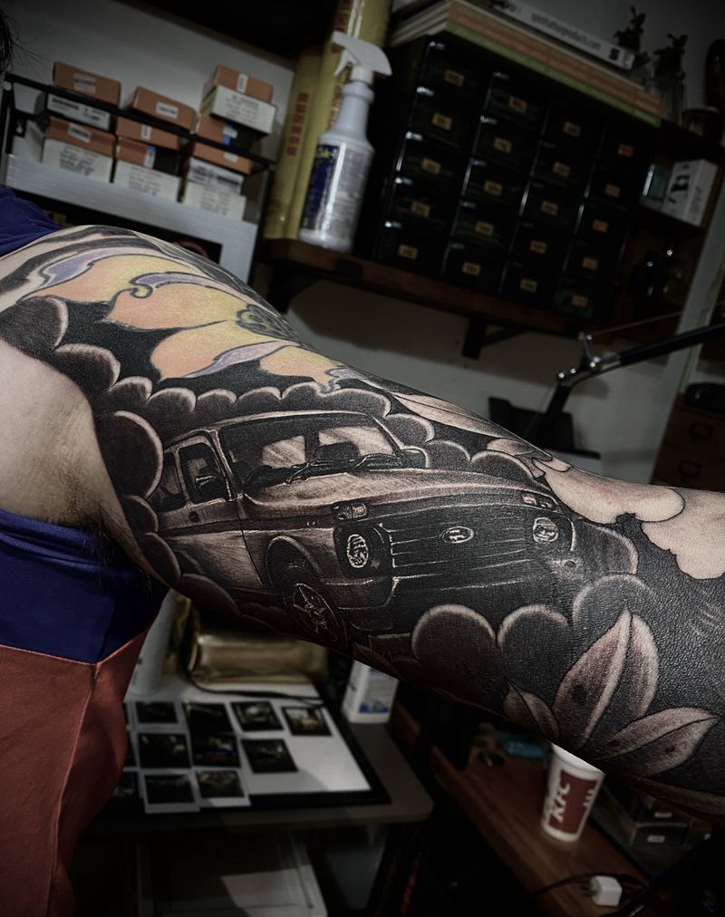 当前位置: 首页 >河北省邯郸市纹身店-邯郸牛刺青纹身图案>花臂纹身图片_手臂欧美写实老传统纹身图案