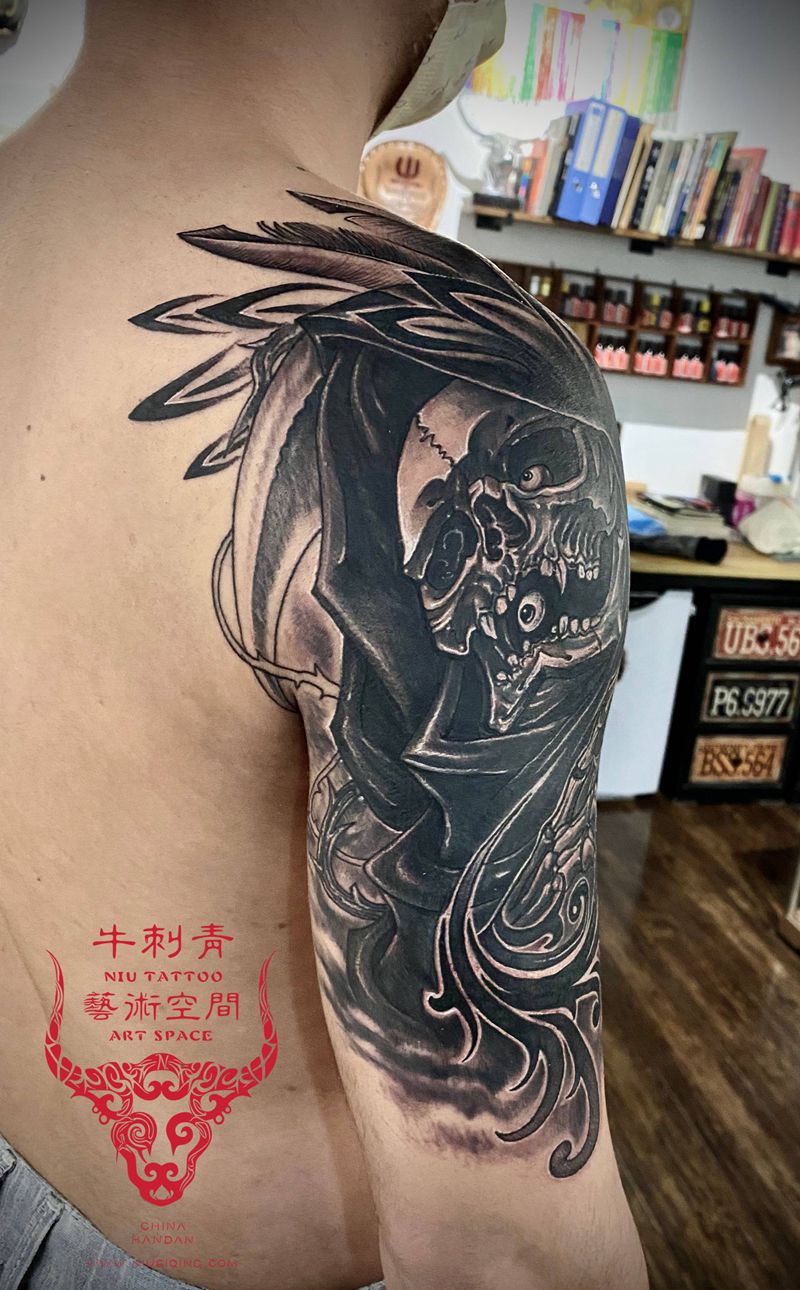 黑灰满背纹身图案