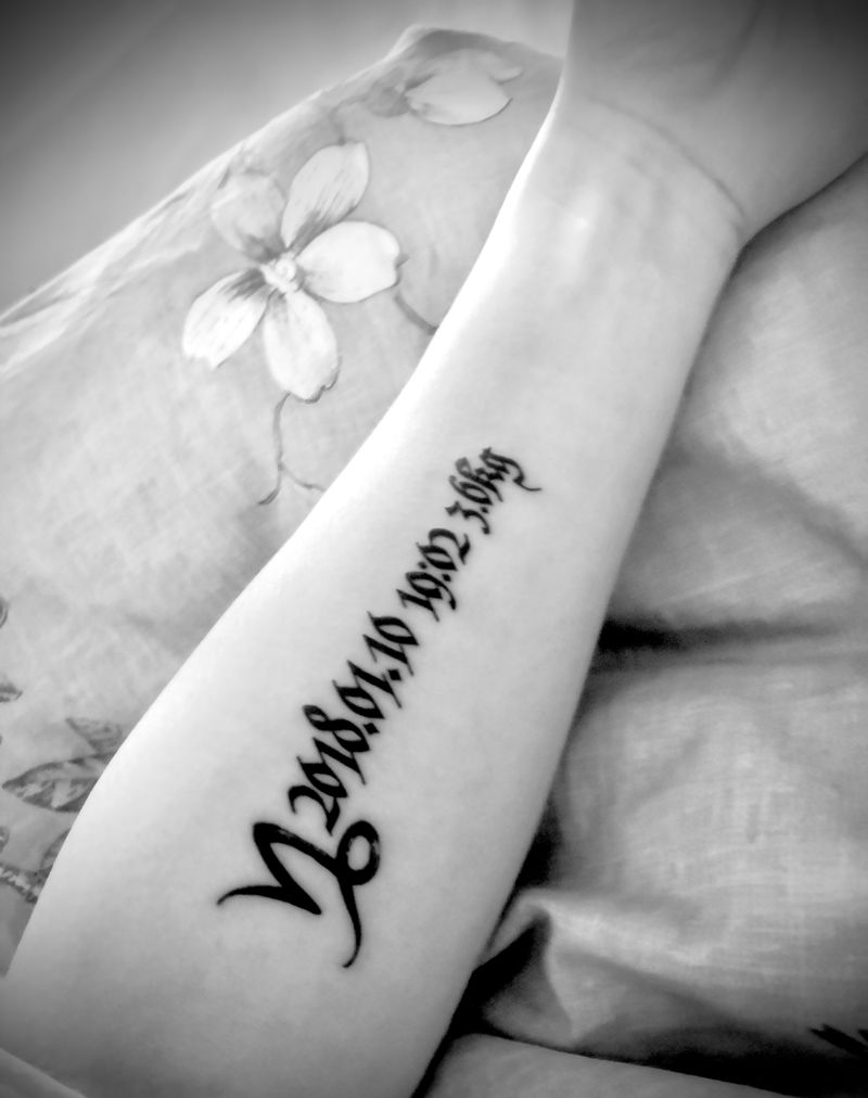 星座数字纹身图片_手臂花体字图腾纹身图案