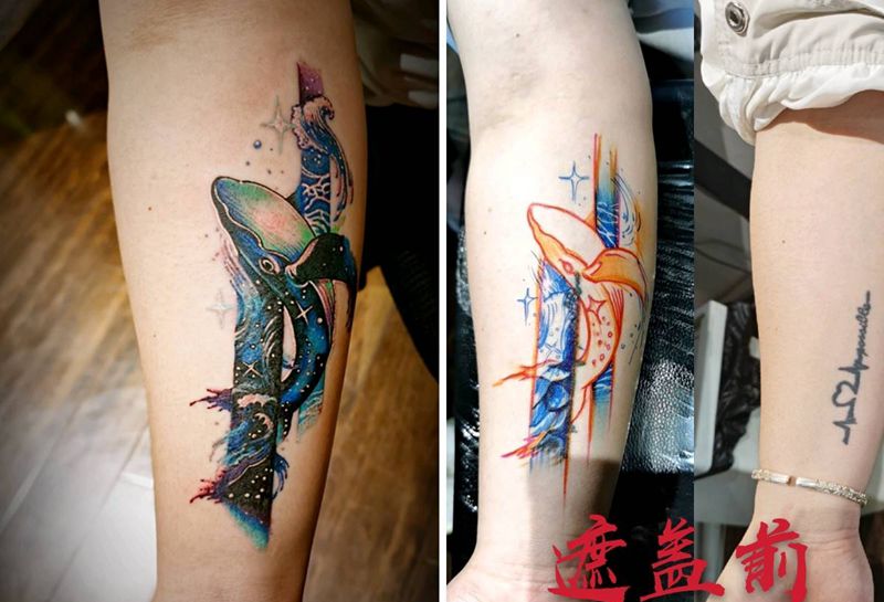 当前位置: 首页 >河北省邯郸市纹身店-邯郸牛刺青纹身图案>鲸纹身图片_手臂水彩几何纹身图案