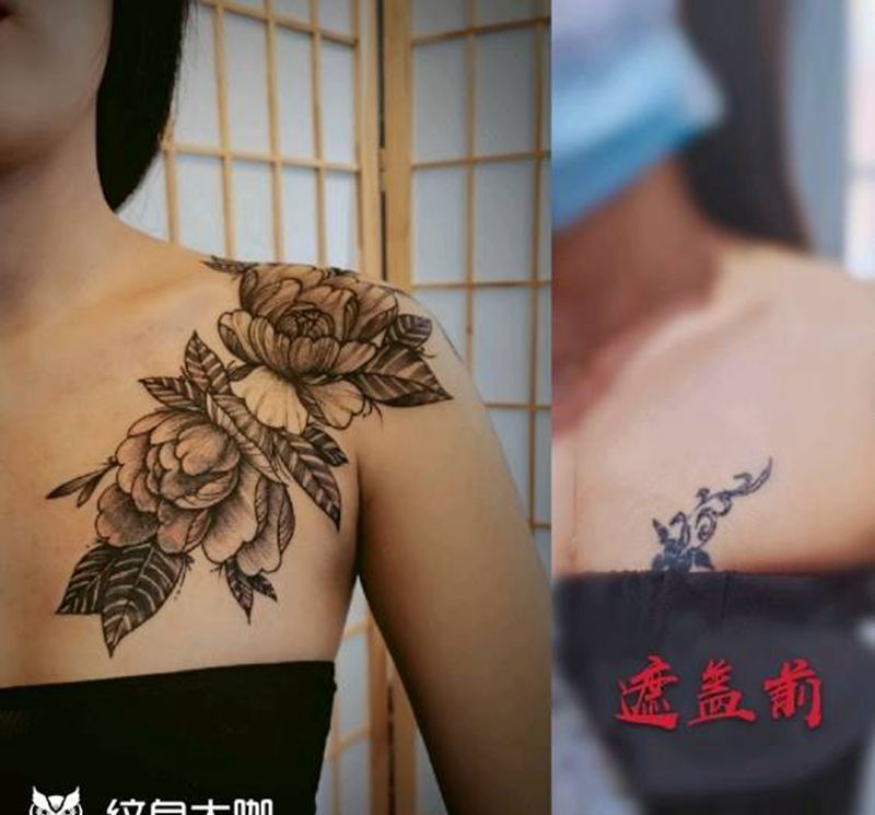 • 女性大花胸纹身_43张霸气漂亮的女性大花胸纹身图案作品