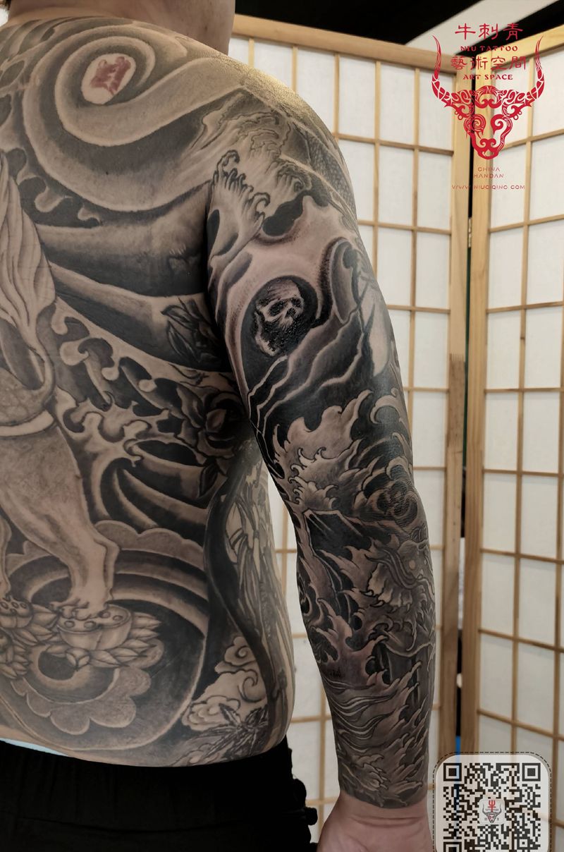黑灰满背纹身图案