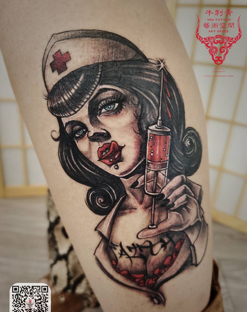 当前位置: 首页 >河北省邯郸市纹身店-邯郸牛刺青纹身图案>护士纹身图片_腿部New School纹身图案