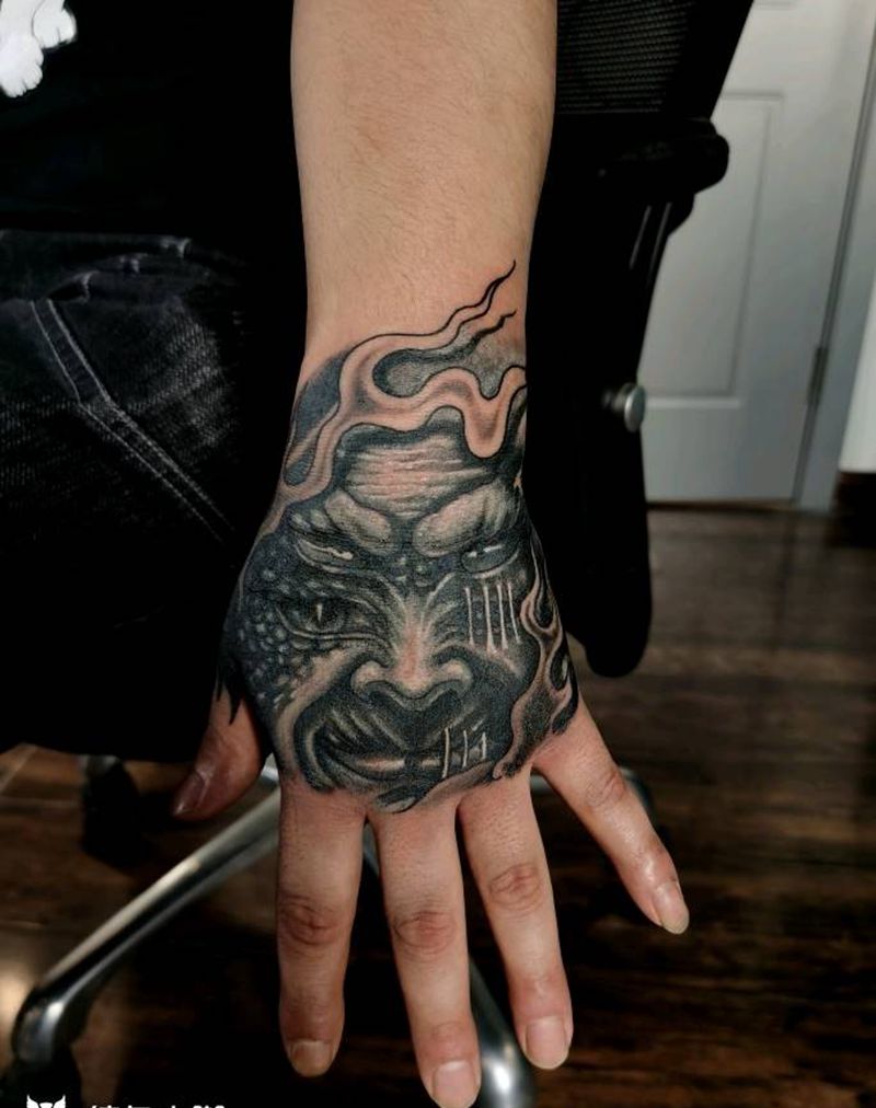 遮盖旧图纹身图片_手部欧美写实纹身图案