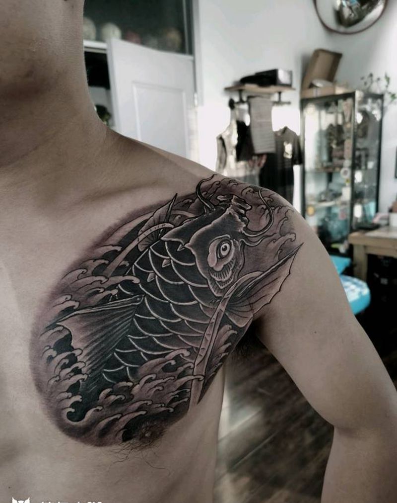 鱼 遮盖旧图纹身图片_胸部新传统老传统纹身图案