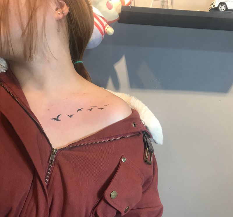 锁骨小燕子纹身图片_胸部纹身图案