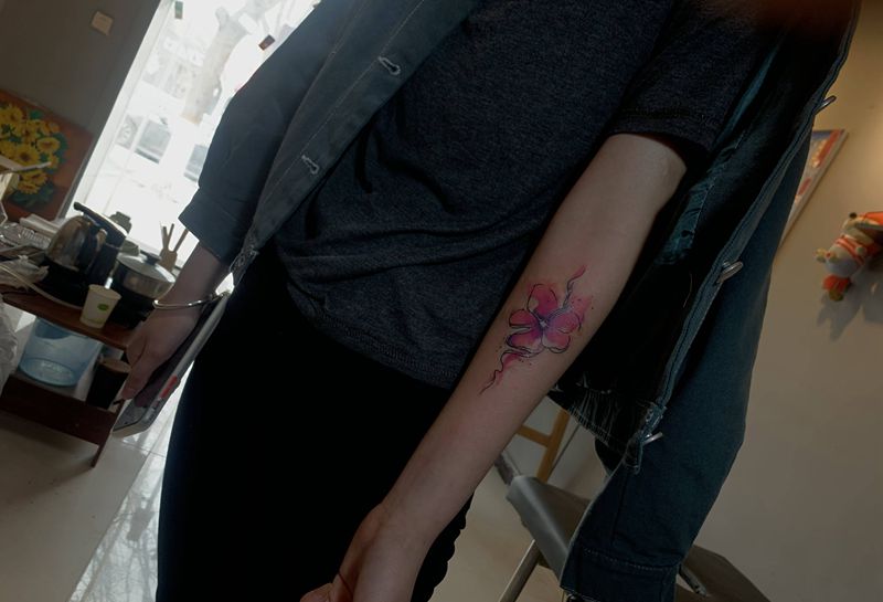 《送你一朵小红花》纹身图片_手臂水彩纹身图案