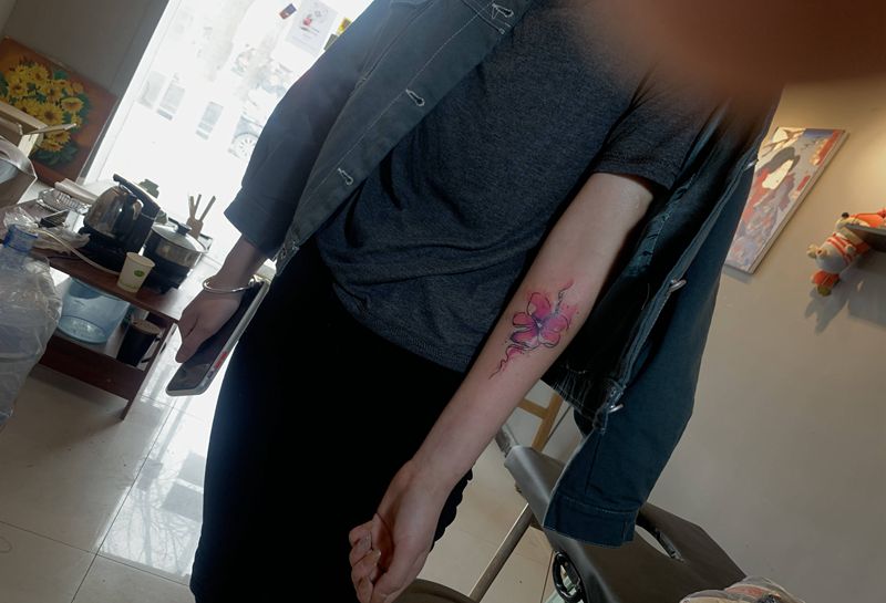 《送你一朵小红花》纹身图片_手臂水彩纹身图案