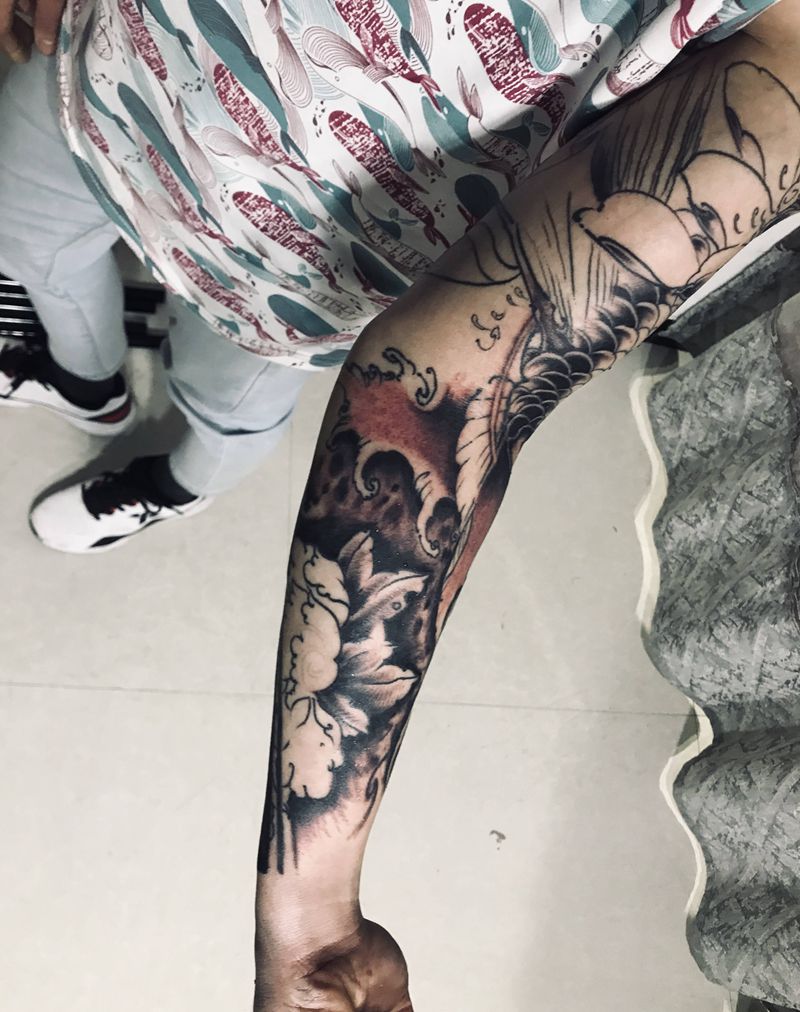 当前位置: 首页 >河北省邢台市纹身店-彫夏一門刺青纹身图案>新传统花臂纹身图片_手臂新传统纹身图案