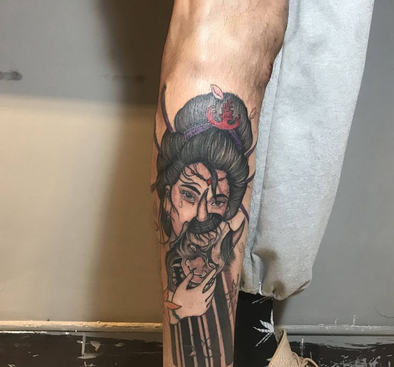 当前位置: 首页 >河北省邢台市纹身店-彫夏一門刺青纹身图案>艺妓纹身图片_腿部新传统纹身图案